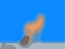 The image, made from a gif of only a very small number of pixels, has been further smoothed and simplified to erase all recognition of the original form, yet the movement is still utterly clear – some kind of fetching, erotic rocking or swaying.