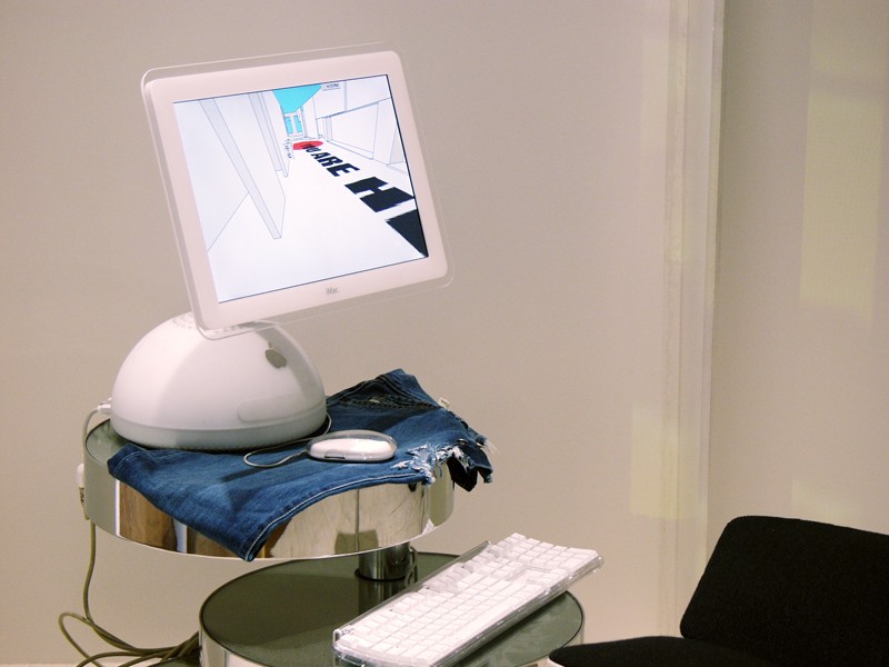 When I was first approached by curator Sebastien Agneesens about the possibility of creating a work for the Diesel Denim Gallery I thought, what kind of artwork could possibly stand up to the retail environment and not get eaten by it, not turn into advertising for the products around it? I decided the only likely work would take on the structure of retail architecture itself, as a subject, and though it would still be ground up and consumed, it might transmit its meaning virally in the process.